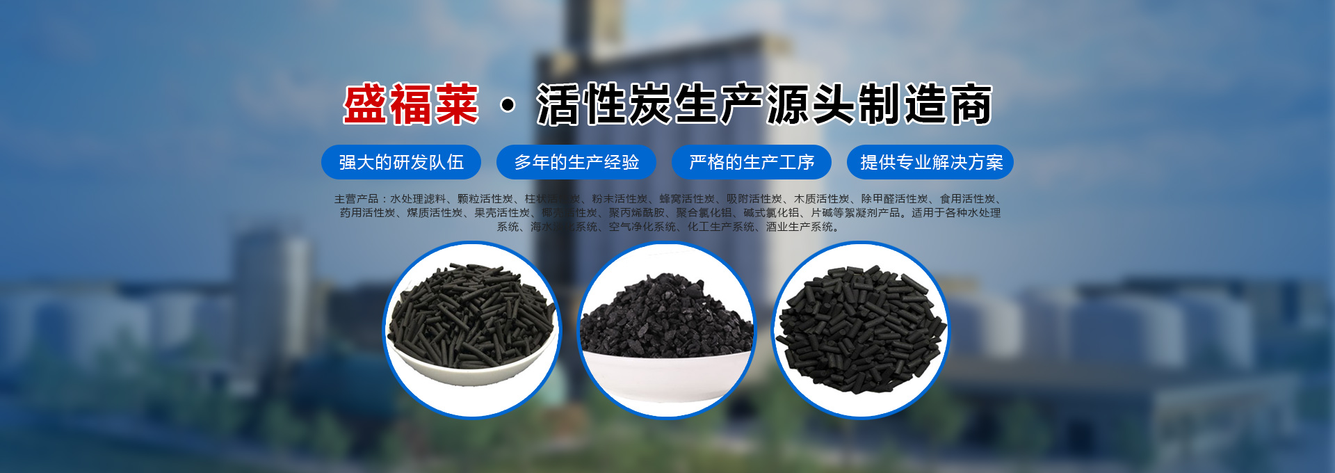 河南盛福萊環??萍加邢薰臼且患覍I銷售各種規格型號活性炭、污水處理藥劑、碳源的公司,位于中原凈水材料基地-鞏義市,是從事各類活性炭及相關產品生產、研發及銷售的一體化企業。主營產品:水處理濾料、顆粒活性炭、柱狀活性炭、粉末活性炭、蜂窩活性炭、吸附活性炭、木質活性炭、除甲醛活性炭、食用活性炭、藥用活性炭、煤質活性炭、果殼活性炭、椰殼活性炭、聚丙烯酰胺、聚合氯化鋁、堿式氯化鋁等絮凝劑產品、碳源,適用于各種水處理系統、海水淡化系統、空氣凈化系統、化工生產系統、酒業生產系統。服務于各種大、中、小型自來水廠、石油化工廠、造紙印染廠、鋼鐵廠、發電廠、食品廠、冶金廠等行業。河南盛福萊環保科技有限公司創立以來